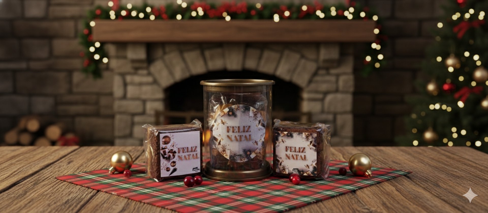 Brownies personalizados, recheados e embalados com tema natalino — perfeitos para presentear e adoçar festas no Rio de Janeiro.