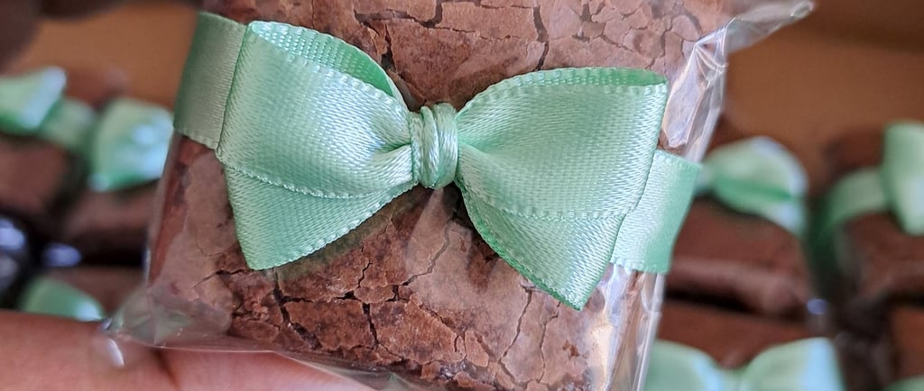 Mas o que realmente deu o toque final foram as fitas verdes personalizadas, que trouxeram um charme único e transformaram os brownies em verdadeiras lembrancinhas de festa. 🎀💚 Cada embalagem foi pensada para harmonizar com a decoração, encantando não só os convidados, mas também a anfitriã, que viu sua mesa ganhar ainda mais vida.